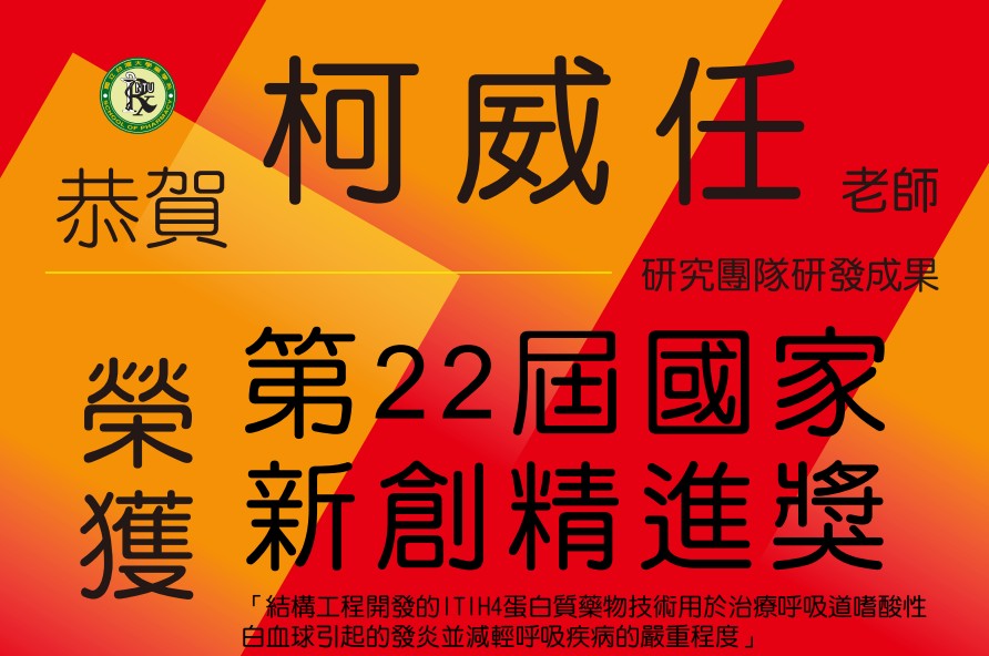【恭賀】 柯威任老師研究團隊研發成果 「結構工程開發的ITIH4蛋白質藥物技術用於治療呼吸道嗜酸性白血...