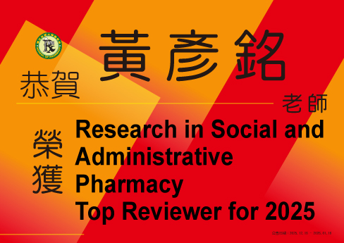 【恭賀】黃彥銘老師榮獲Research in Social and Administrative Pharmacy Top Reviewer for 2025