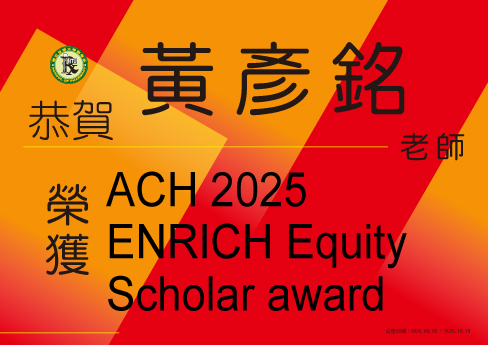 【恭賀】黃彥銘老師榮獲ACH 2025 ENRICH Equity Scholar award