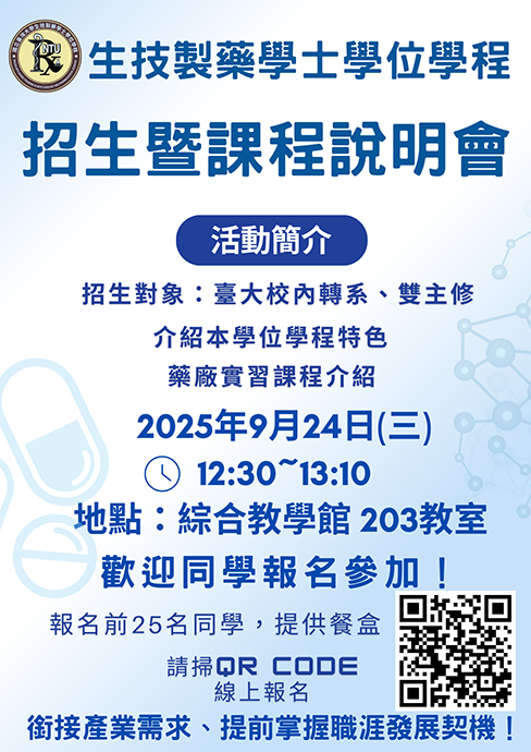 114年9月24日生技製藥學位學程招生暨課程說明會