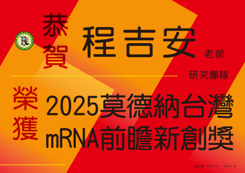 【恭賀】程吉安老師研究團隊榮獲2025莫德納台灣mRNA前瞻新創獎